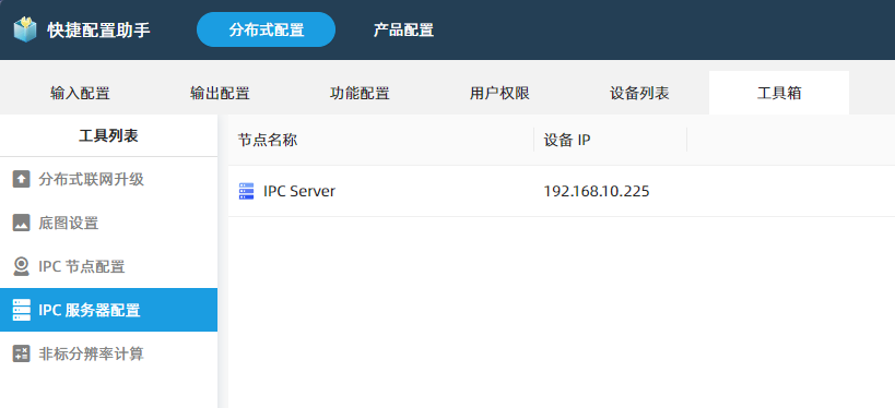 切换到“工具箱 - IPC 服务器配置”界面。