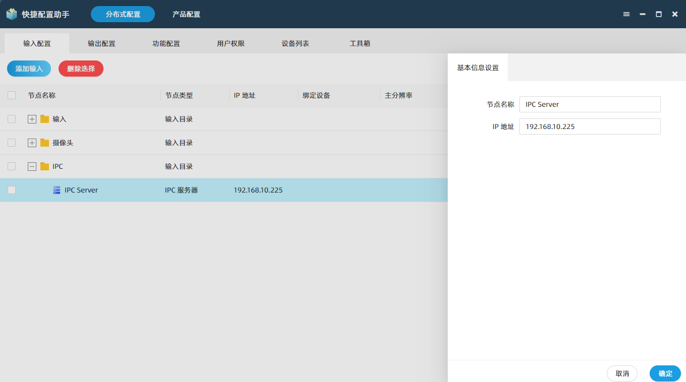 在“输入配置”中添加“IPC 服务器”节点。