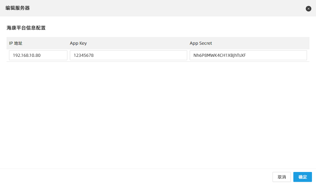 双击“IPC 服务器”节点,配置海康平台信息,然后点击“确定”按钮。