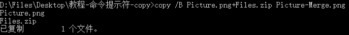 则执行命令 copy /B Picture.png+Files.zip Picture-Merge.png